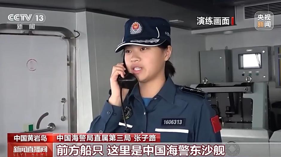 中国海警局直属第三局 张子路:前哨船只,这里是中国海警东沙舰,你船未经允许,投入中华东谈主民共和国黄岩岛海域,违犯中华东谈主民共和国干系法律,请调养航向立即驶离。